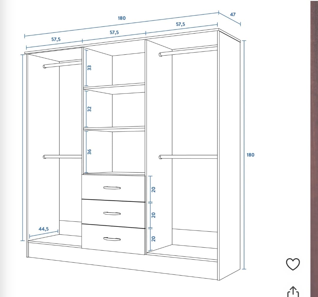 medidas 180cm de ancho x 47cm de fondo x 180cm de alto